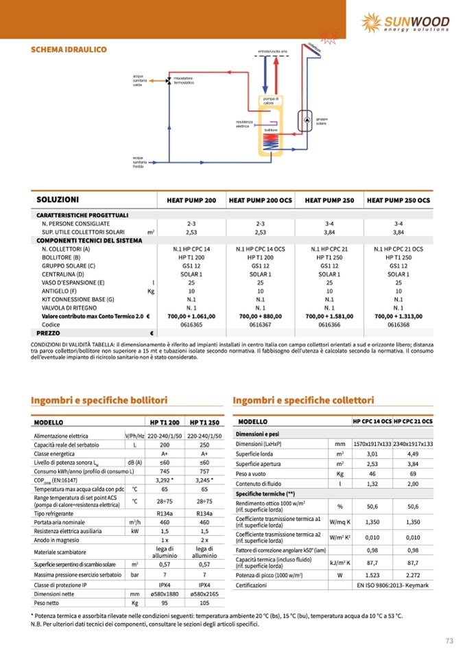 À TABELLA: il dimensionamento è riferito ad impianti installati in centro Italia con campo collettori orientati a sud e orizzonte libero; distanza