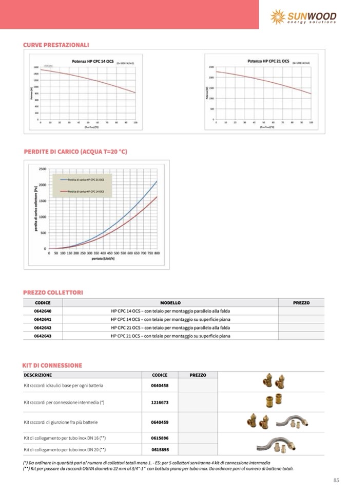 (*) Da ordinare in quantità pari al numero di collettori totali meno 1. - ES: per 5 collettori serviranno 4 kit di connessione intermedia