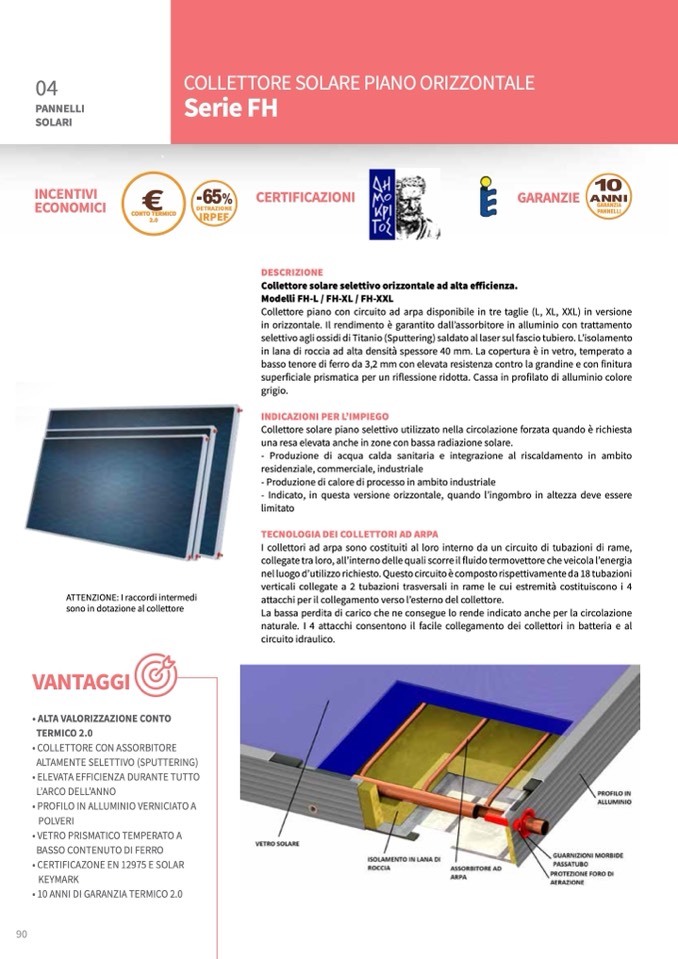 in orizzontale. Il rendimento è garantito dall’assorbitore in alluminio con trattamento