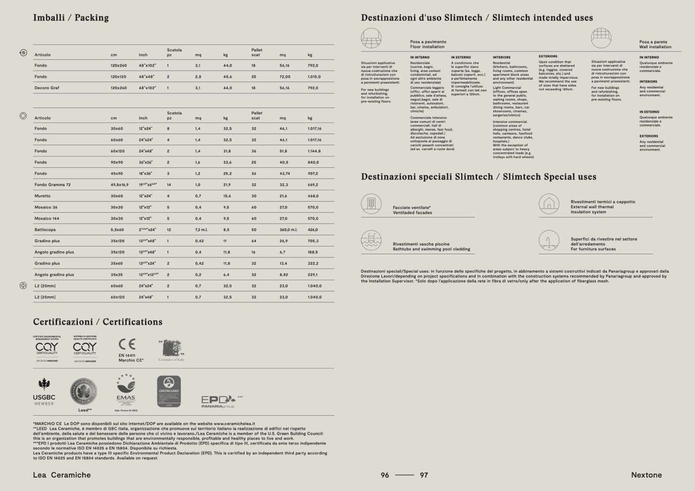 Lea Ceramiche products have a type III specific Environmental Product Declaration (EPD). This is certified by an independent third party according
