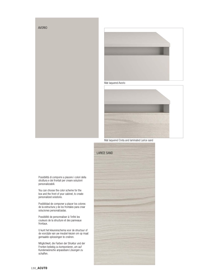 Mat laquered Creta and laminated Larice sand