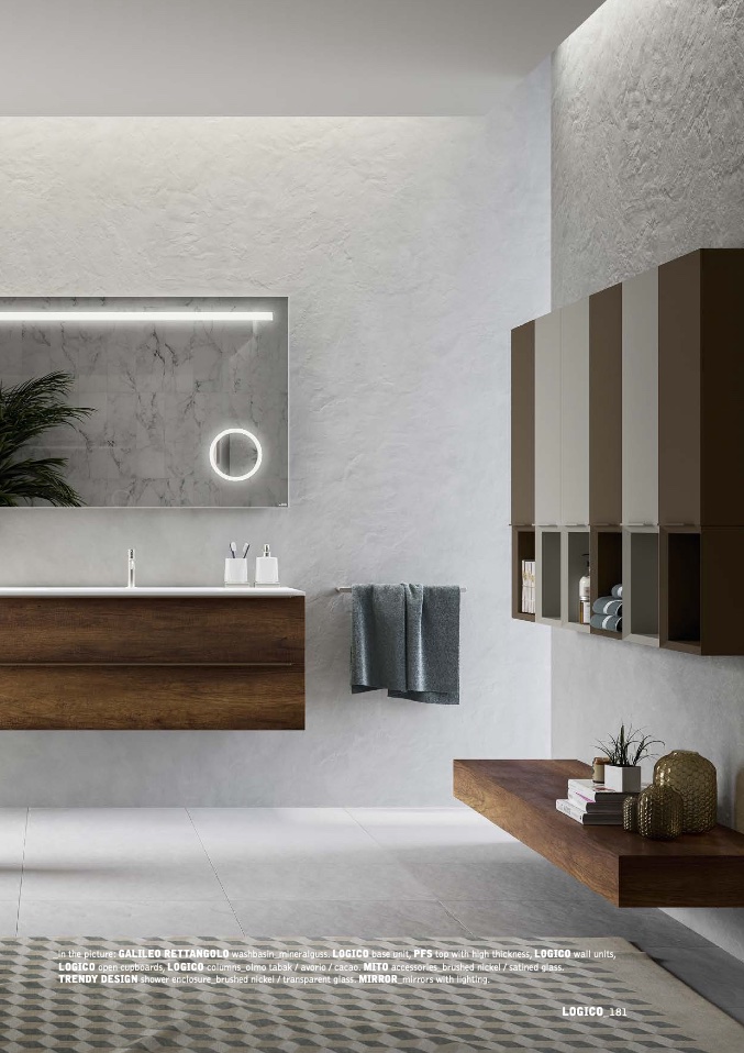_in the picture: GALILEO RETTANGOLO washbasin_mineralguss. LOGICO base unit, PFS top with high thickness, LOGICO wall units,