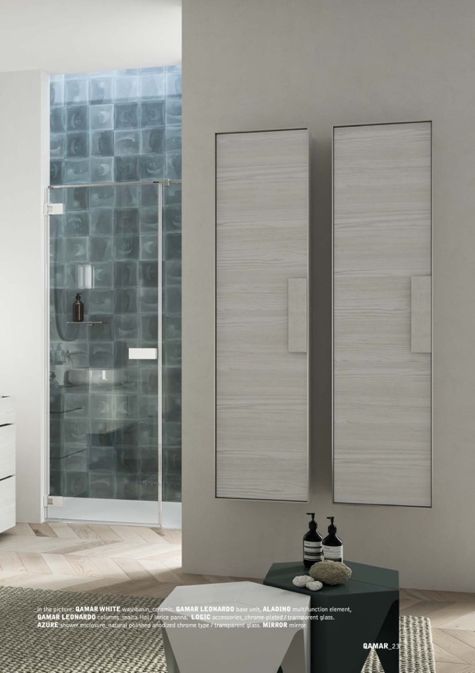 QAMAR LEONARDO columns_malta Hpl / larice panna. LOGIC accessories_chrome-plated / transparent glass.