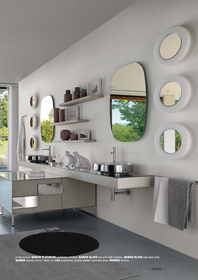 _in the picture: QAMAR PLATINUM washbasin_ceramic. QAMAR GLASS top with high tickness, QAMAR GLASS side base units,