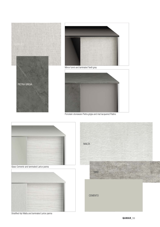 Porcelain stoneware Pietra grigia and mat lacquered Platino