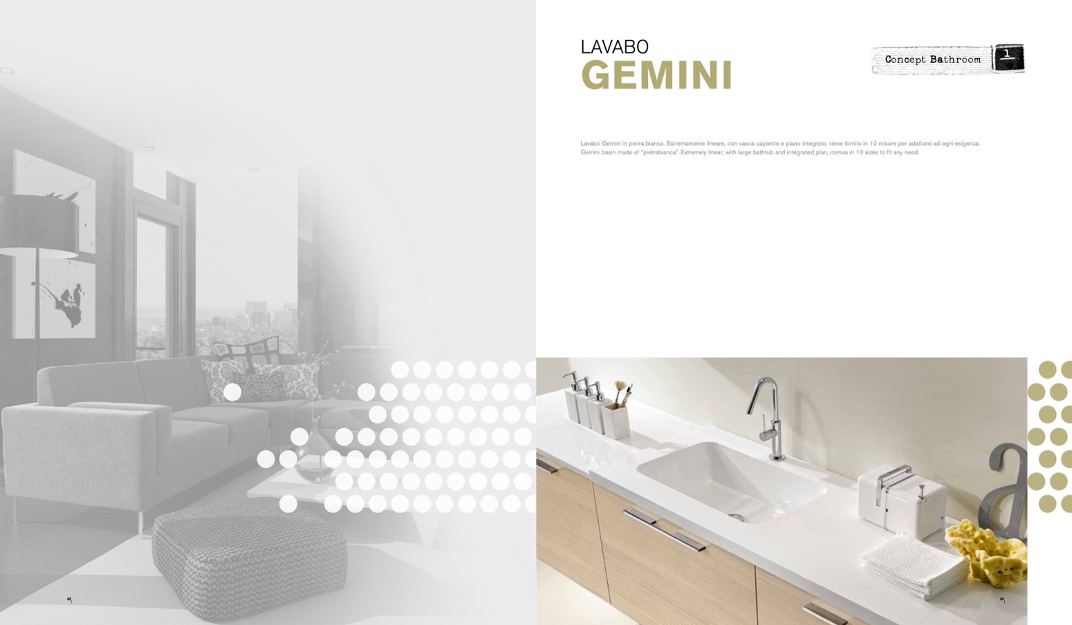 Gemini basin made of “pietrabianca”. Extremely linear, with large bathtub and integrated plan, comes in 10 sizes to fit any need.
