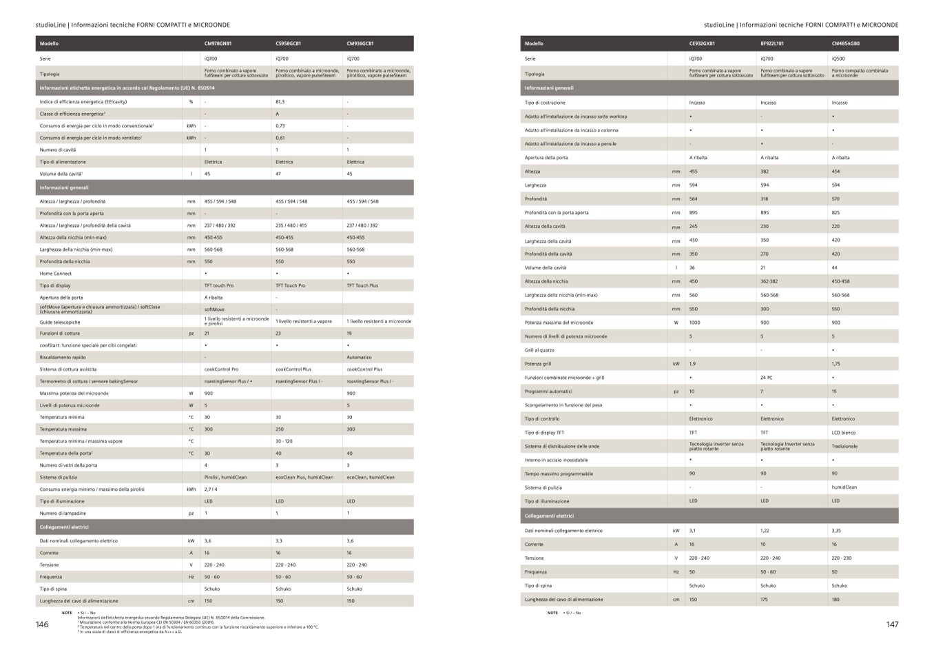 studioLine | Informazioni tecniche FORNI COMPATTI e MICROONDE