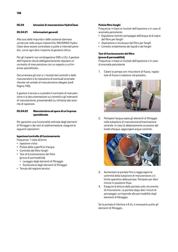 di filtraggio e dei vani di sedimentazione, eseguire le