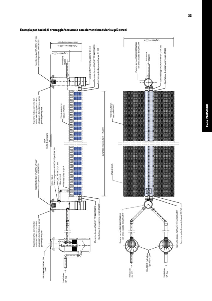 Esempio per bacini di drenaggio/accumulo con elementi modulari su più strati