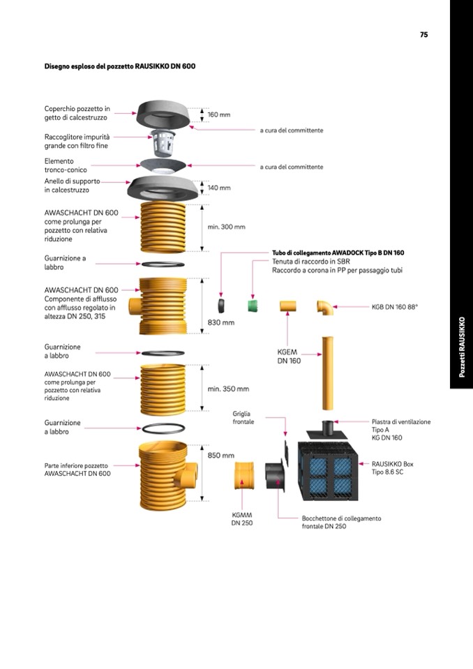 Disegno esploso del pozzetto RAUSIKKO DN 600