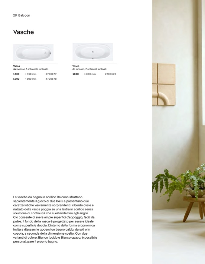 Le vasche da bagno in acrilico Balcoon sfruttano