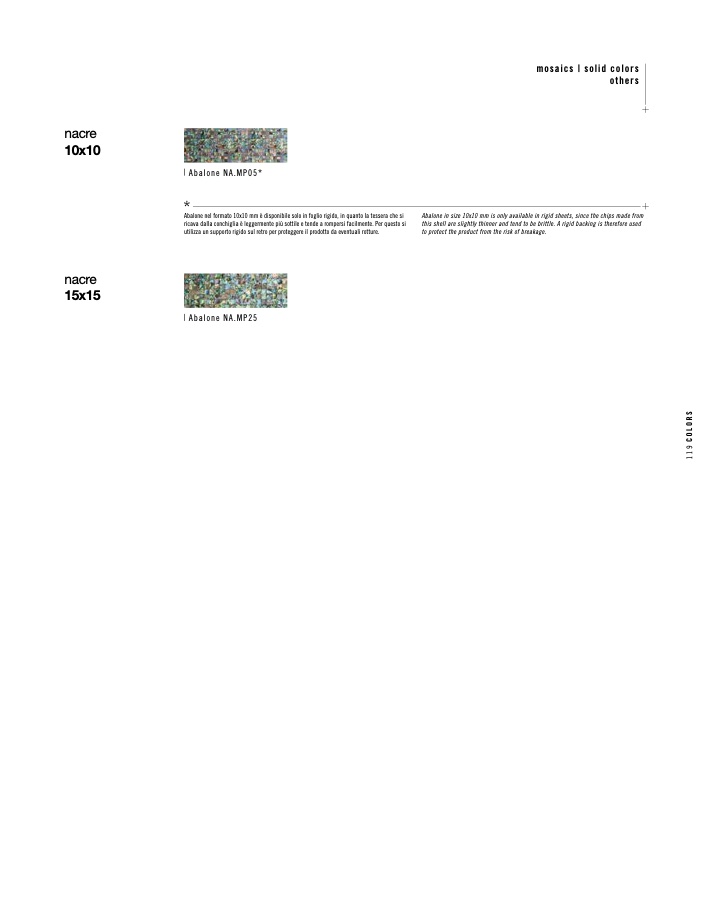 Abalone nel formato 10x10 mm è disponibile solo in foglio rigido, in quanto la tessera che si