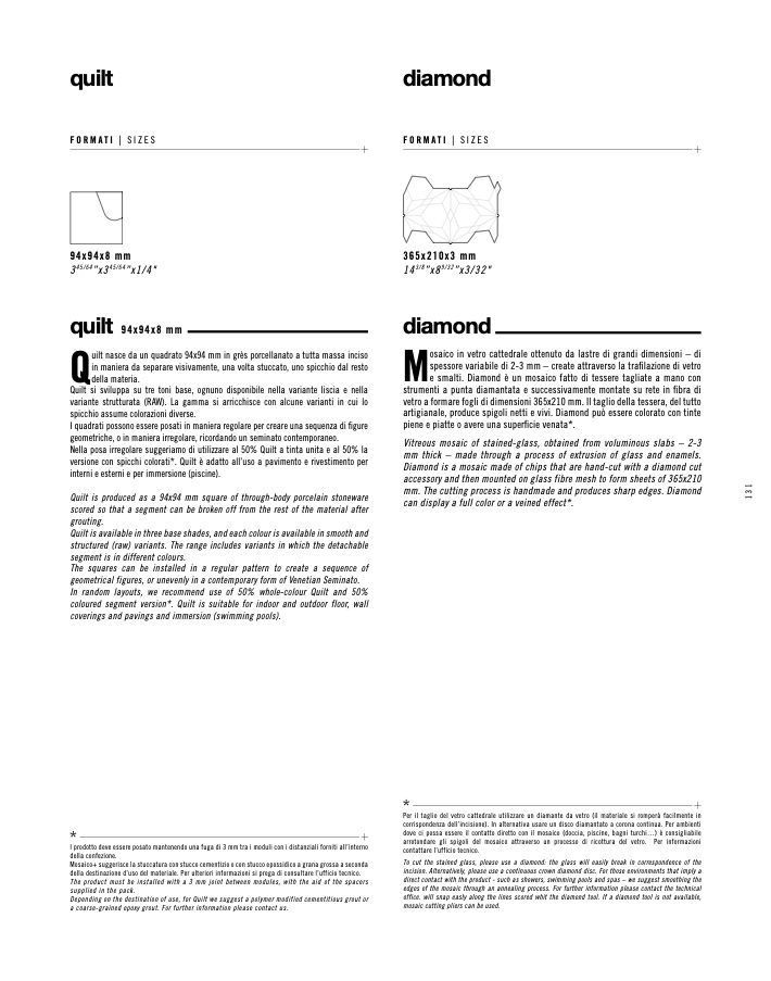 Quilt is produced as a 94x94 mm square of through-body porcelain stoneware