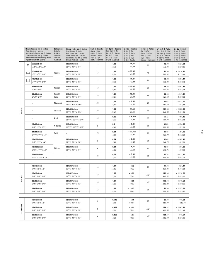 Misure Tessera mm | inches