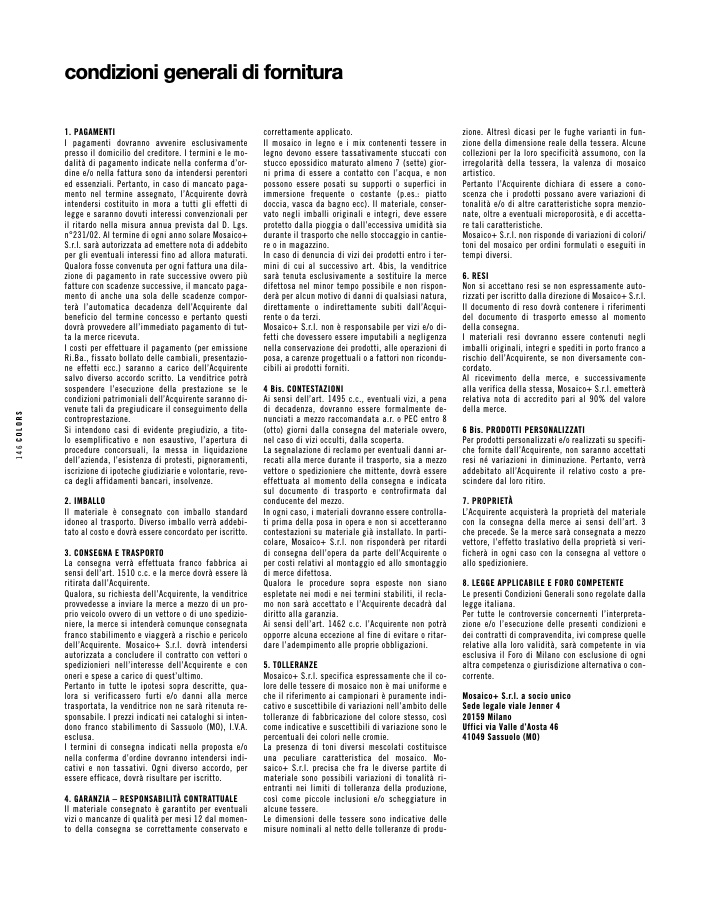 Mosaico+ S.r.l. non risponde di variazioni di colori/