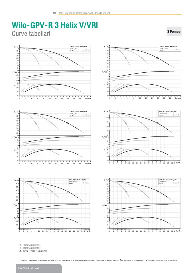 E CURVE CARATTERISTICHE SONO RIFERITE ALLE SOLE POMPE E NON TENGONO CONTO DELLE CONDIZIONI DI INSTALLAZIONE