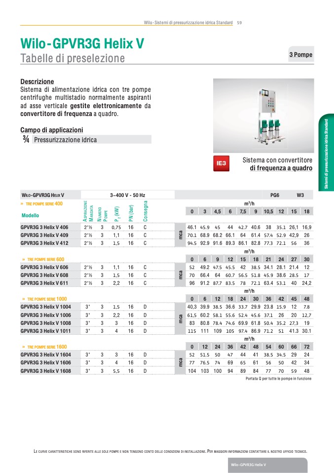 E CURVE CARATTERISTICHE SONO RIFERITE ALLE SOLE POMPE E NON TENGONO CONTO DELLE CONDIZIONI DI INSTALLAZIONE