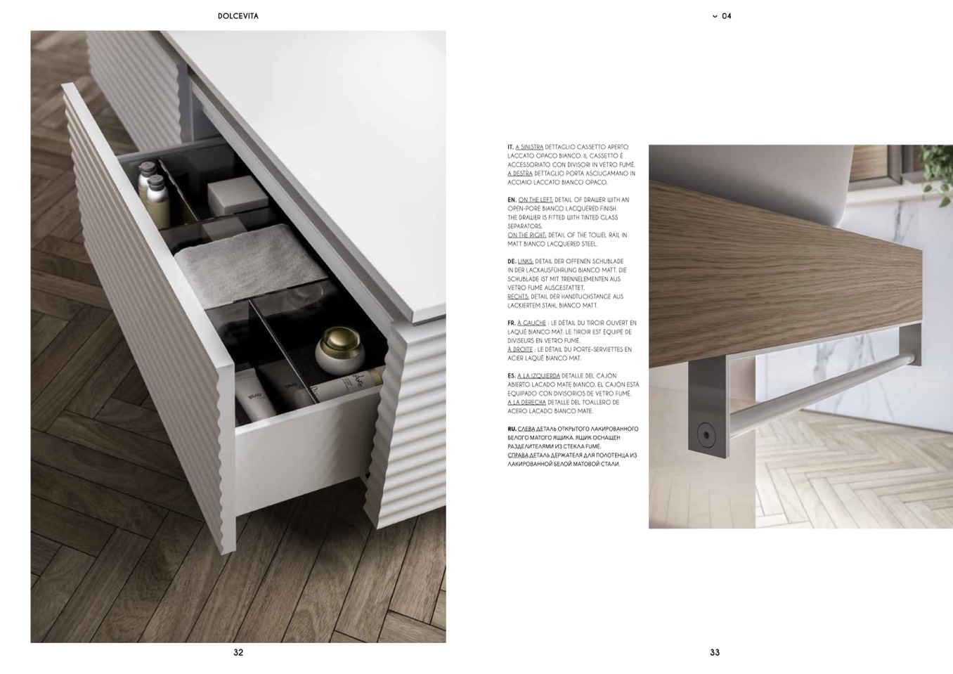 OPEN-PORE BIANCO LACQUERED FINISH.