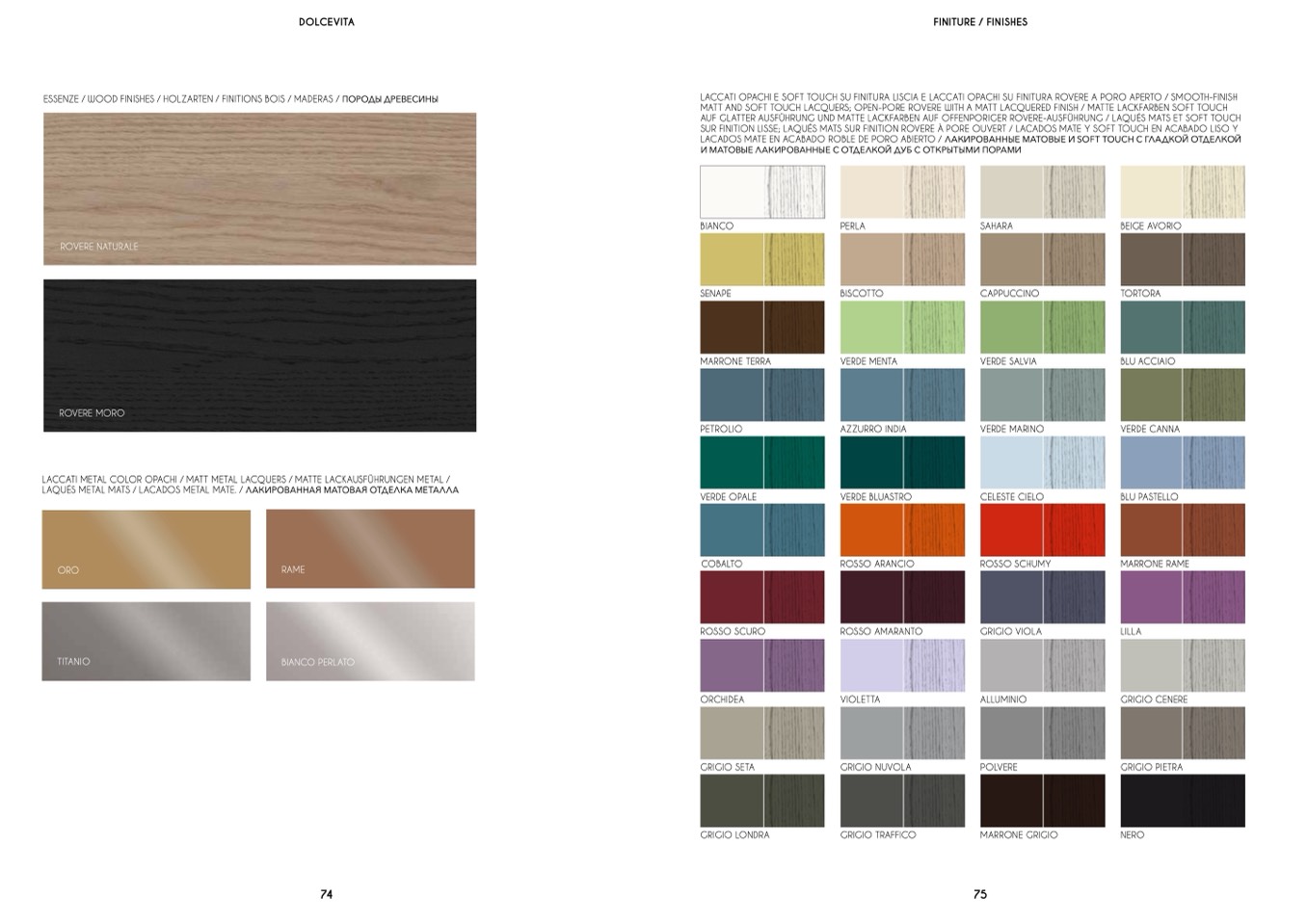 AUF GLATTER AUSFÜHRUNG UND MATTE LACKFARBEN AUF OFFENPORIGER ROVERE-AUSFÜHRUNG / LAQUÉS MATS ET SOFT TOUCH