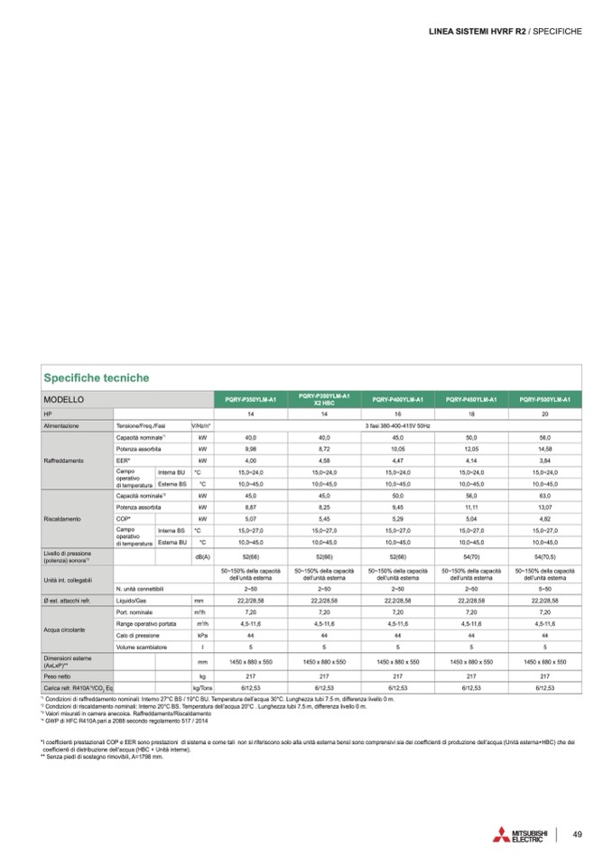 *I coefficienti prestazionali COP e EER sono prestazioni di sistema e come tali non si riferiscono solo alla unità esterna bensì sono comprensivi sia dei coefficienti di produzione dell’acqua (Unità esterna+HBC) che dei