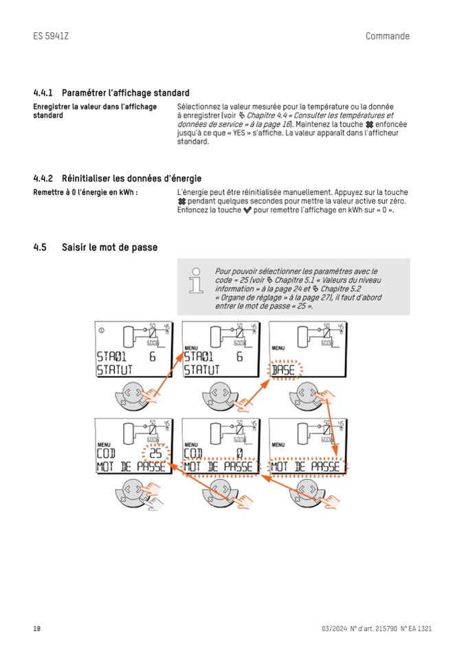 Enfoncez la touche pour remettre l'affichage en kWh sur « 0 ».