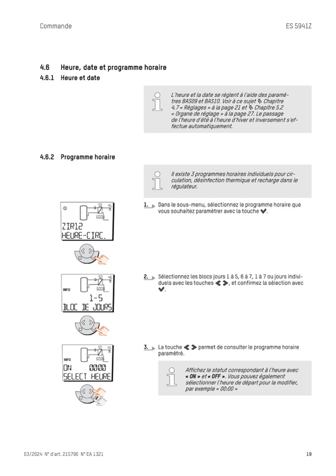 L'heure et la date se règlent à l'aide des paramè-