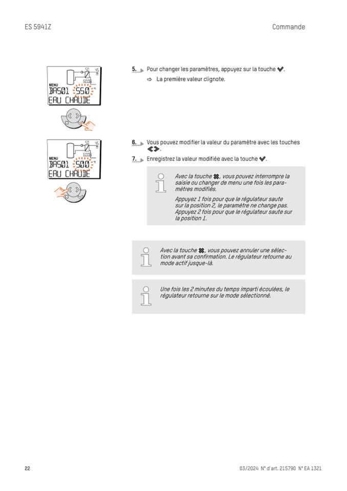 Vous pouvez modifier la valeur du paramètre avec les touches