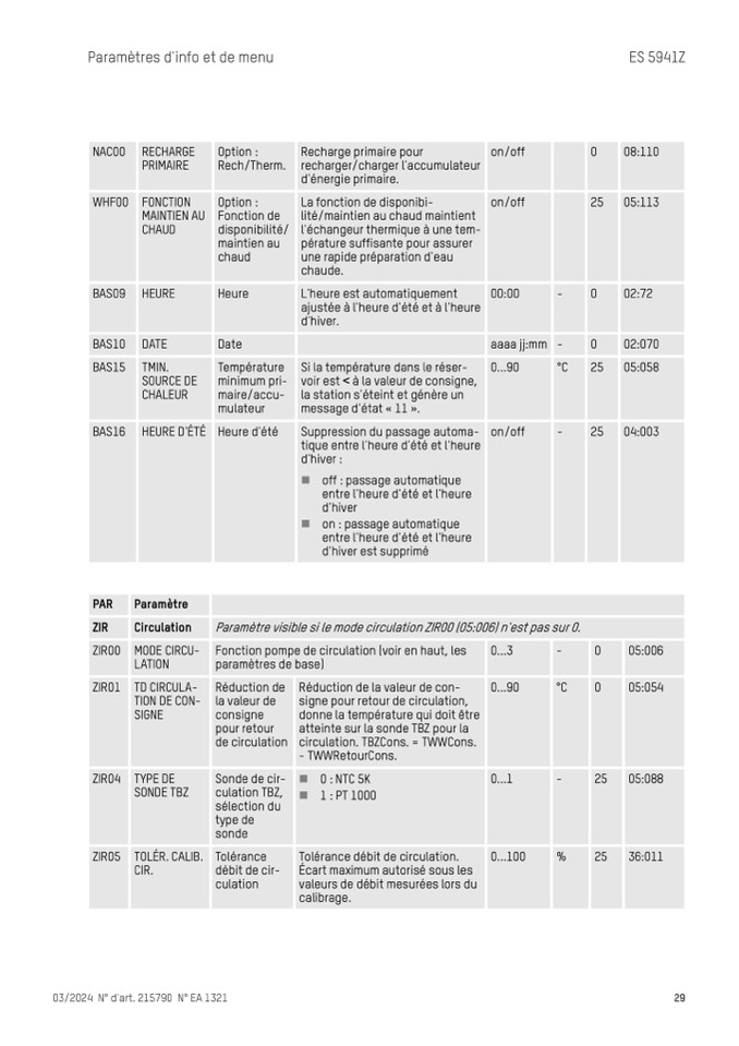 ètre visible si le mode circulation ZIR00 (05:006) n'est pas sur 0.