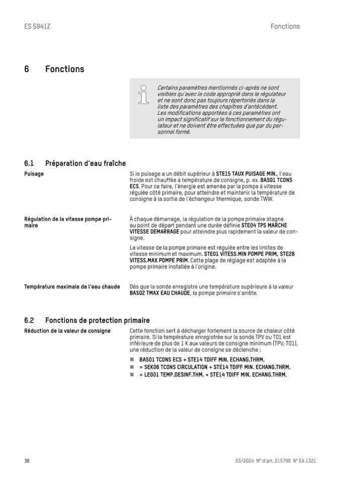 vitesse minimum et maximum. STE01 VITESS.MIN POMPE PRIM, STE28