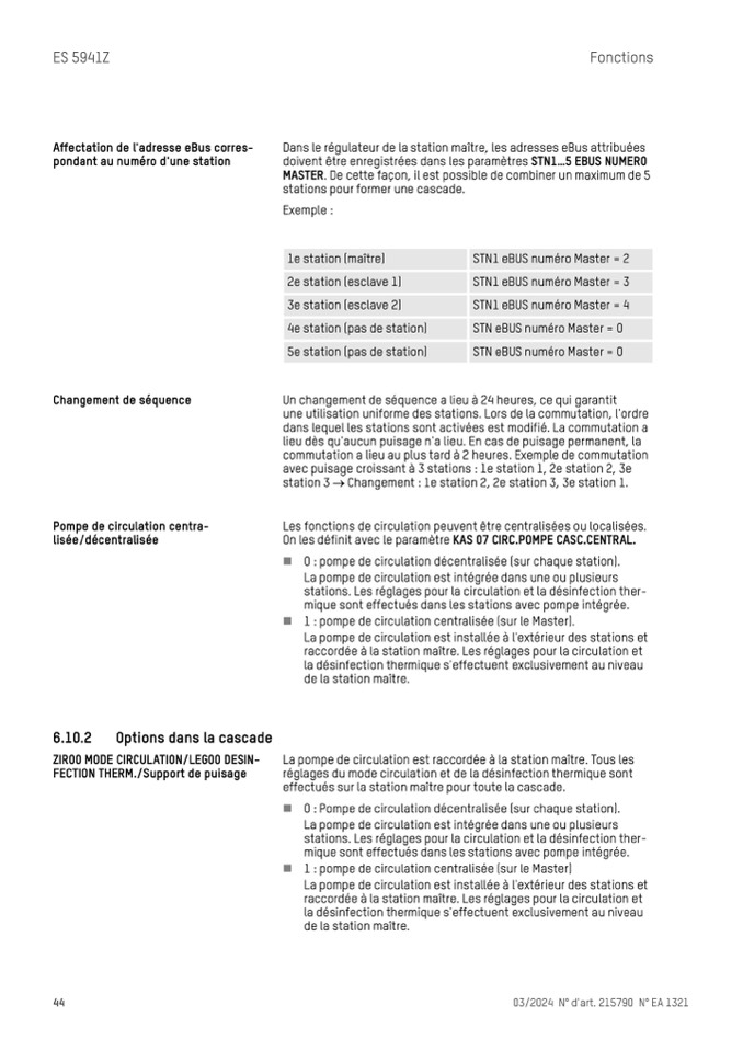 0 : Pompe de circulation décentralisée (sur chaque station).