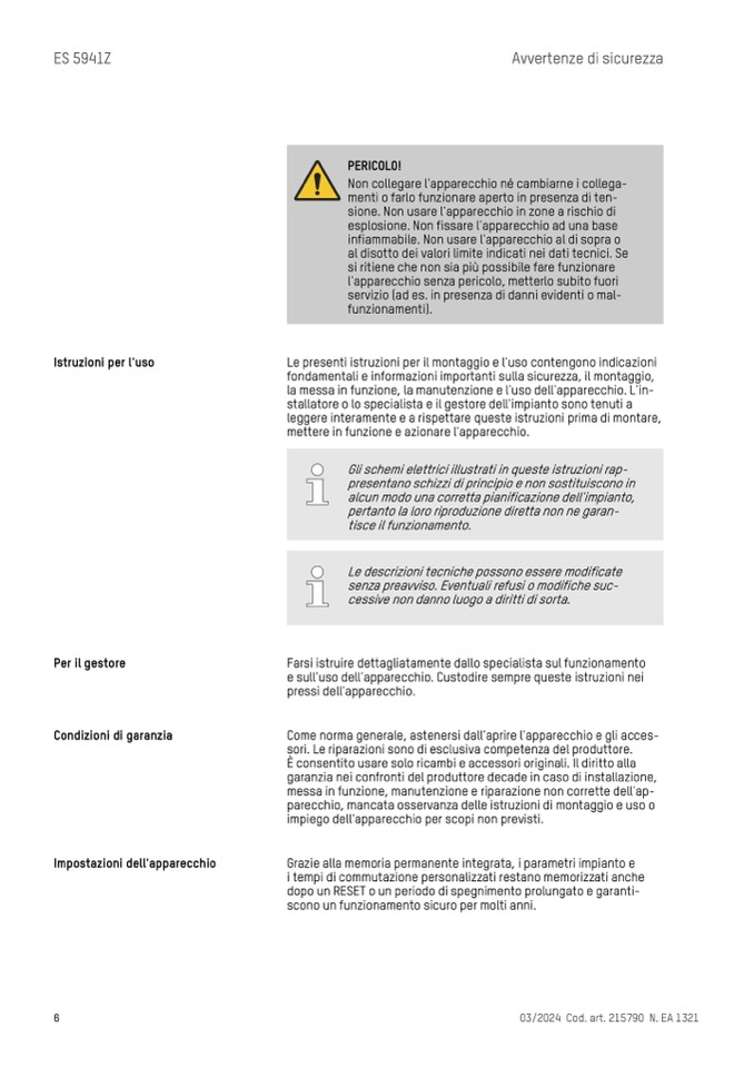 la messa in funzione, la manutenzione e l'uso dell'apparecchio. L'in-