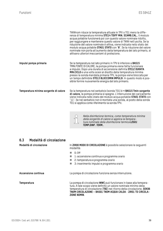 temperatura di circolazione [TBZ] nel ritorno della circolazione. SEK06