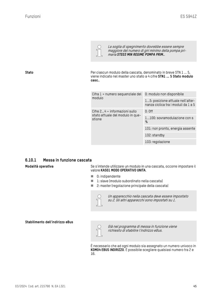 Se s'intende utilizzare un modulo in una cascata, occorre impostare il
