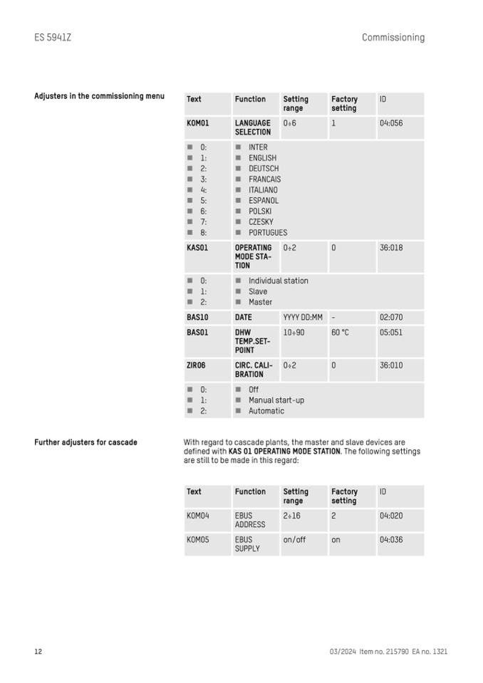 defined with KAS 01 OPERATING MODE STATION. The following settings
