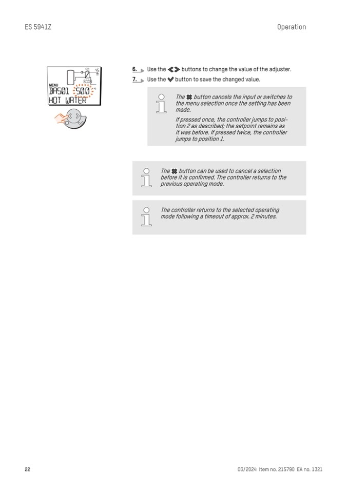 The controller returns to the selected operating