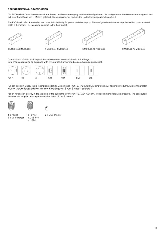 Die eVoline® u-Dock-Serie lässt sich zur Strom- und Datenversorgung individuell konfigurieren. Die konfigurierten module werden fertig verkabelt