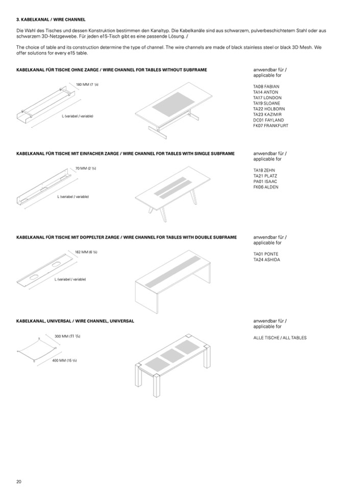 KABeLKAnAL fÜR TiSCHe MiT doppeLTeR ZARge / WiRe CHAnneL foR TABLeS WiTH douBLe SuBfRAMe