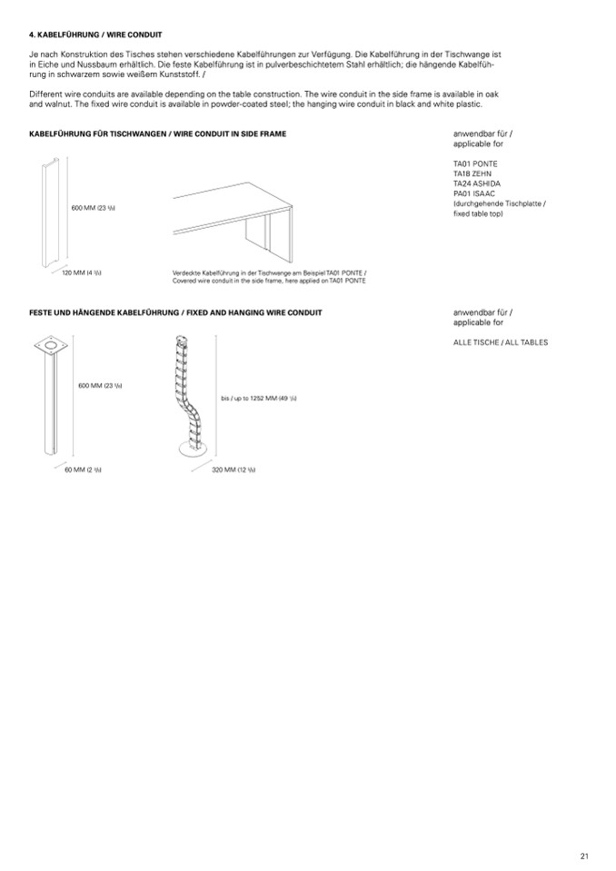 feSTe und HÄngende KABeLfÜHRung / fixed And HAnging WiRe ConduiT