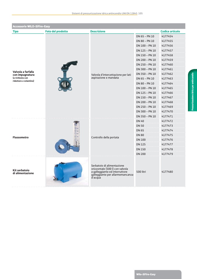 Sistemi di pressurizzazione idrica antincendio UNI EN 12845 105