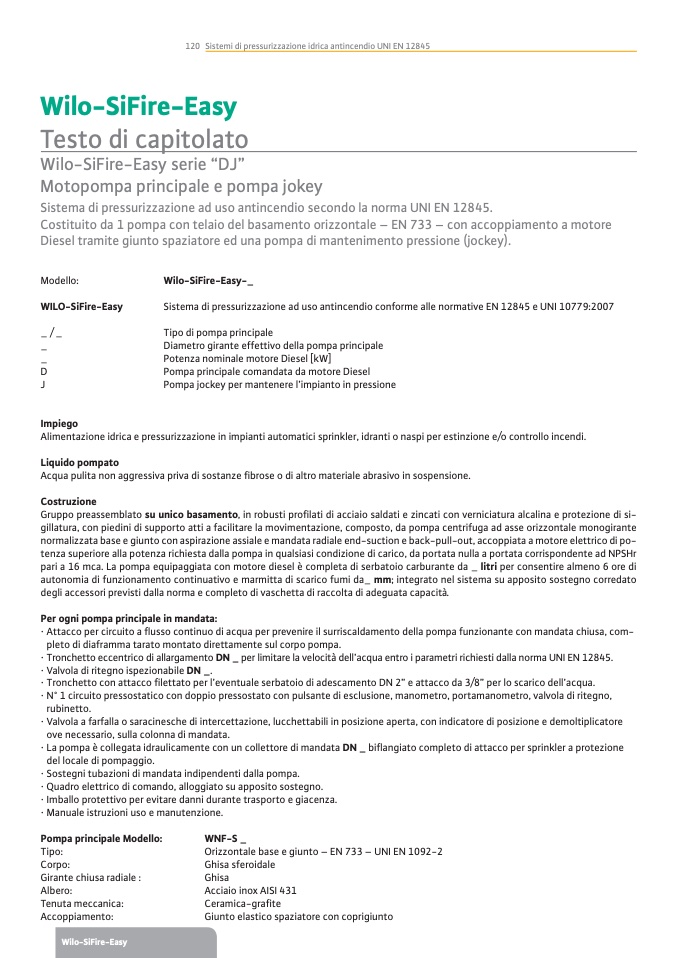 120 Sistemi di pressurizzazione idrica antincendio UNI EN 12845