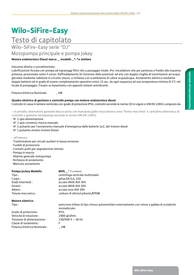 Sistemi di pressurizzazione idrica antincendio UNI EN 12845 121