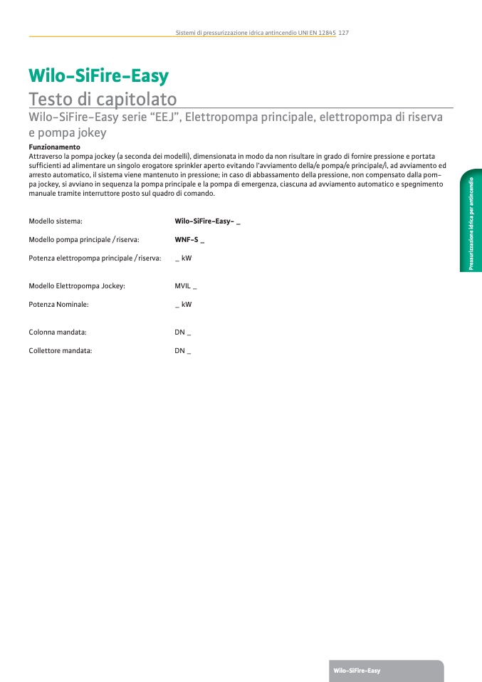Sistemi di pressurizzazione idrica antincendio UNI EN 12845 127