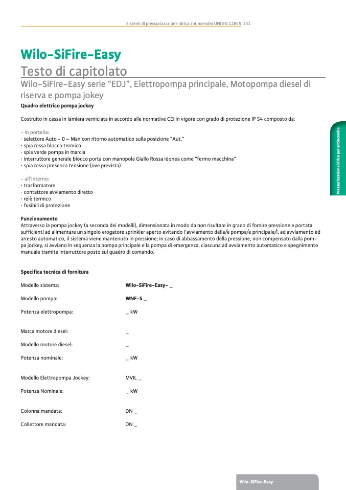 Sistemi di pressurizzazione idrica antincendio UNI EN 12845 131