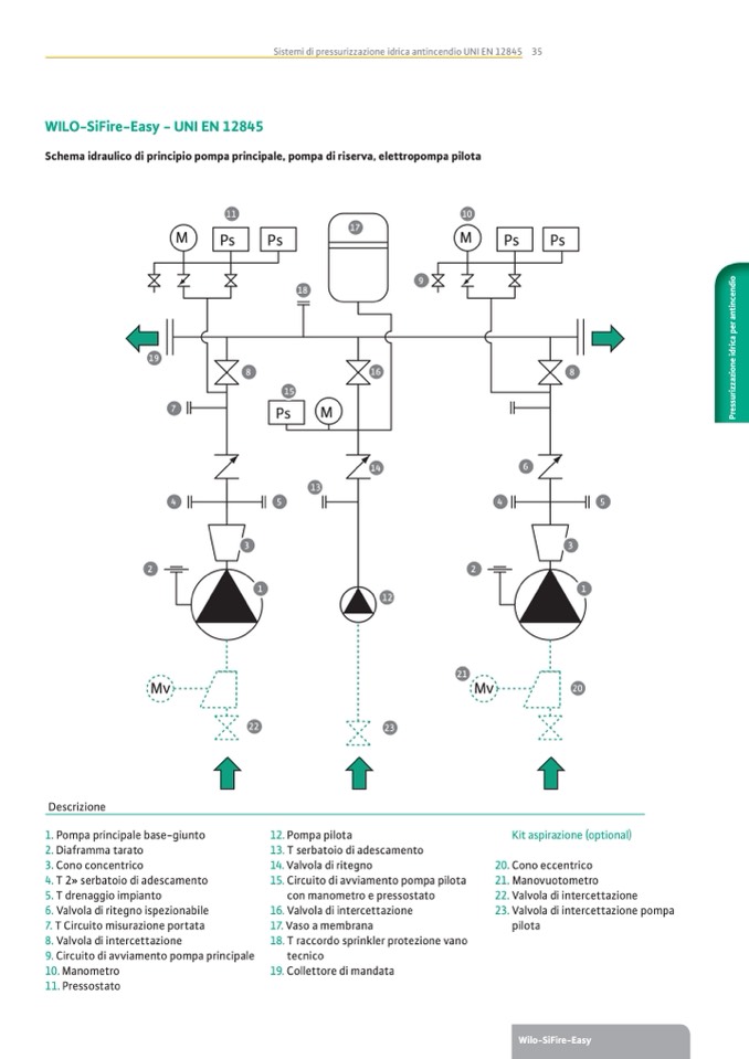 Schema idraulico di principio pompa principale, pompa di riserva, elettropompa pilota