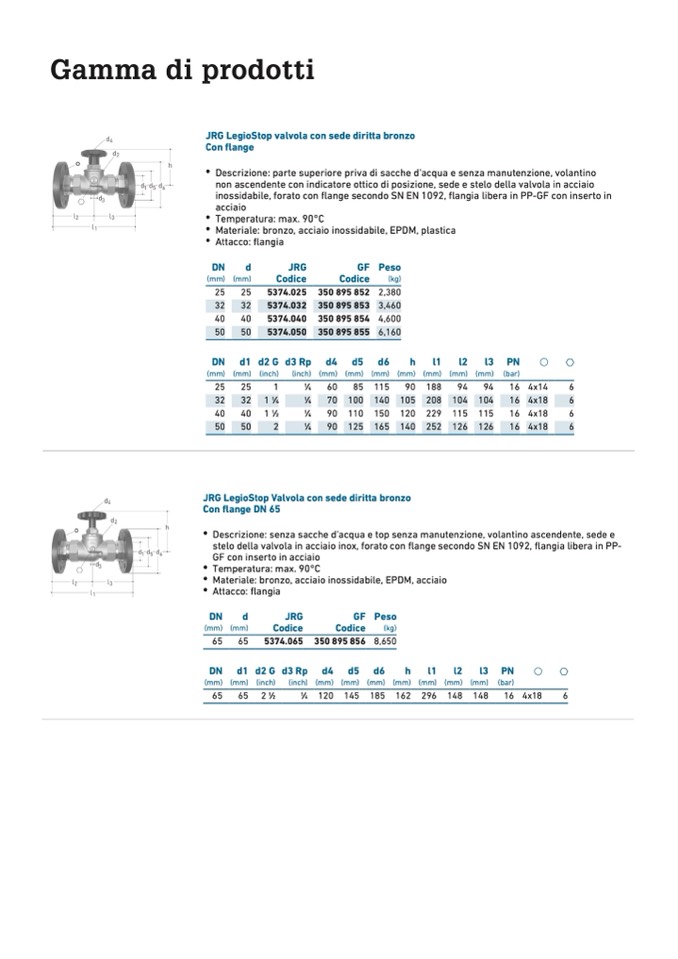 Materiale: bronzo, acciaio inossidabile, EPDM, plastica