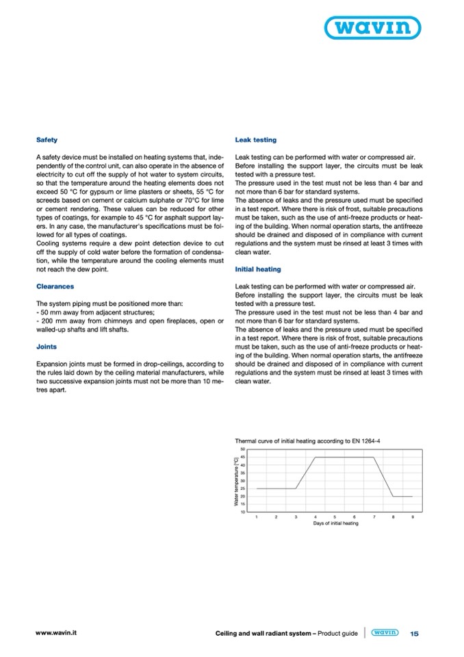 Thermal curve of initial heating according to EN 1264-4