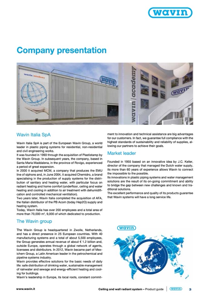 Wavin Italia SpA is part of the European Wavin Group, a world