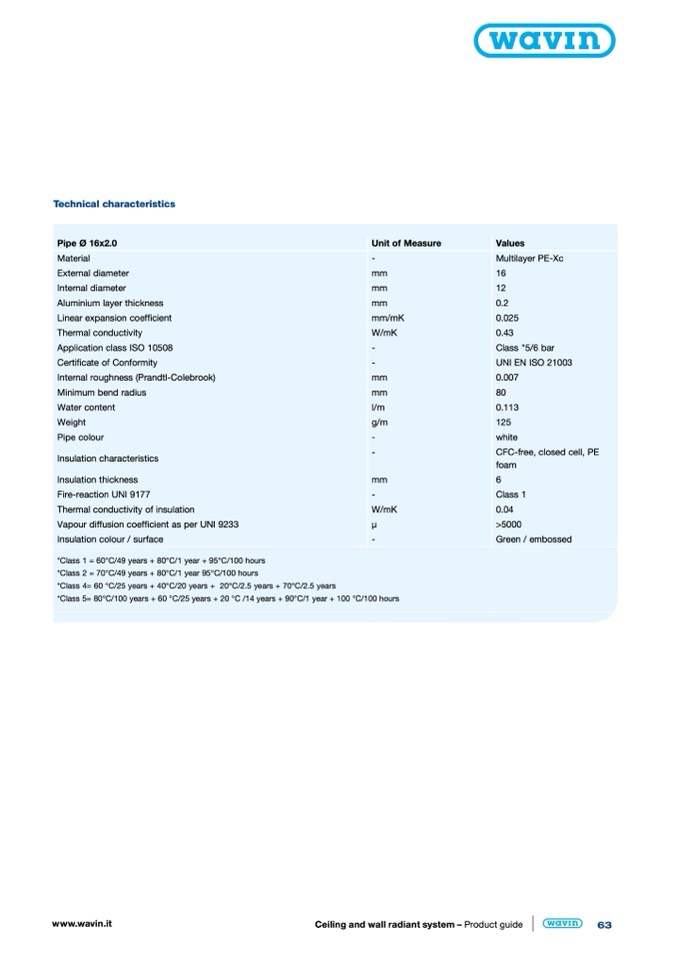 *Class 1 = 60°C/49 years + 80°C/1 year + 95°C/100 hours