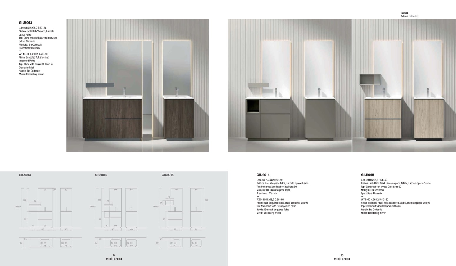 Finiture: Nobilitato Pearl, Laccato opaco Asfalto, Laccato opaco Quarzo