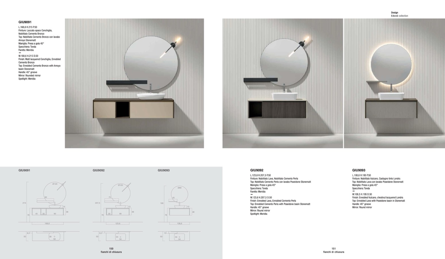 Top: Ennobled Cemento Perla with Poseidone basin Stonematt